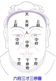 二.髮際之下為天中。其次為南嶽。又名火星。又其次為天庭。又其次為司空。又其次為中正。中正一名華蓋。而氣色部位。則以華蓋包括司空中正兩部。兩眉之中。方為印堂。印堂者。君位也。此為全面部之主。由天中至印堂。共六個部位。勿論高低。勻分六部可也。